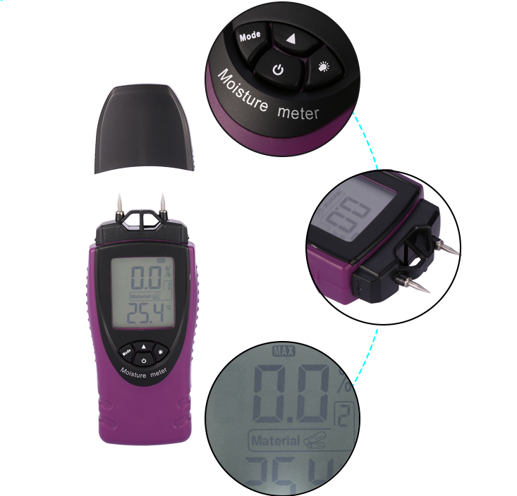 KKMOOM TM410 Professional Digital Wood Moisture Meter LCD Backlight Display Hygrometer Test Probe Humidity Tester