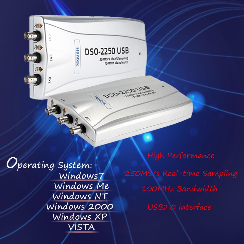 Hantek DSO2250 Professional Oscilloscope PC Based USB Digital Storage Virtual Oscilloscope 2 Channel 100MHz 250MSa/s
