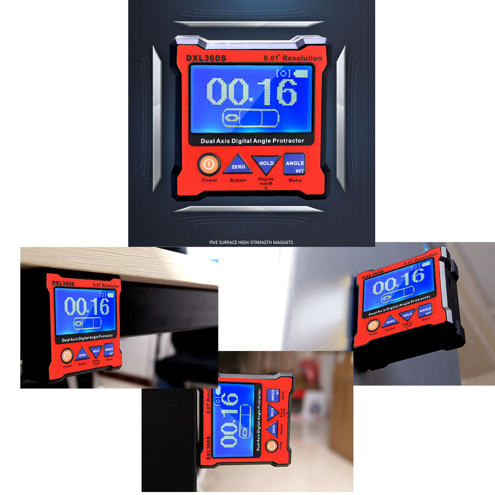 High-precision DXL360S Dual Axis Digital Angle Protractor Dual-axis Digital Display Level Gauge with 5 Side Magnetic Base