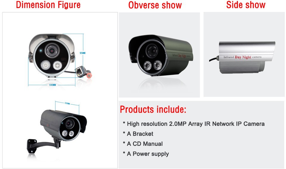 - High quality 2.0 Megapixel HD 1080P Cam Onvif 25fps 2 Array IR Night Vision Outdoor Weatherproof Home Security CCTV IP Camera