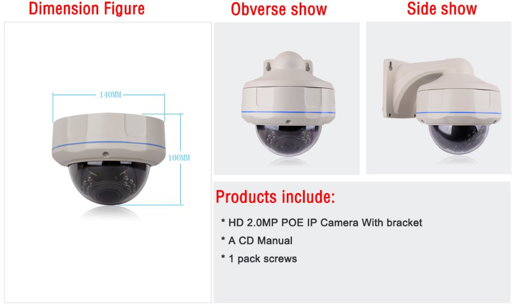 2.0MP 1080P HD Vandalproof indoor Dome camera H.264 Onvif Build-in POE module P2P Security surveillance video record CCTV Camera