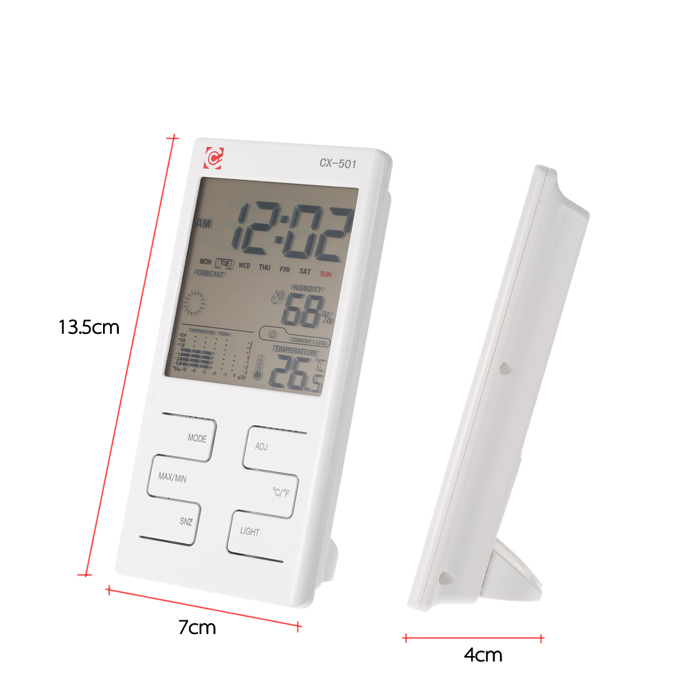 Indoor LCD Digital Temperature Humidity Meter Clock Thermometer Hygrometer Temperature Trend Comfort Level Alarm Hourly