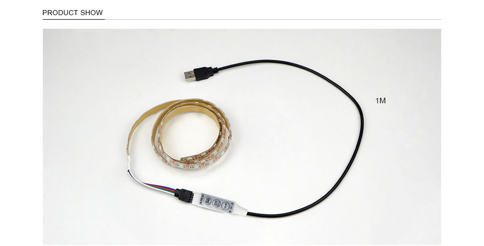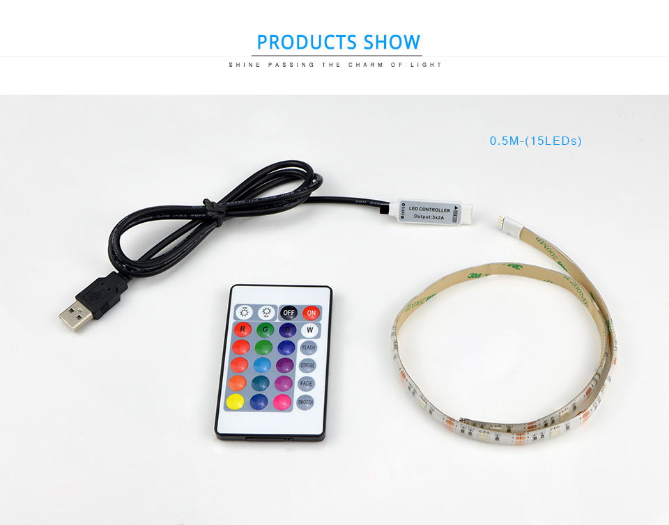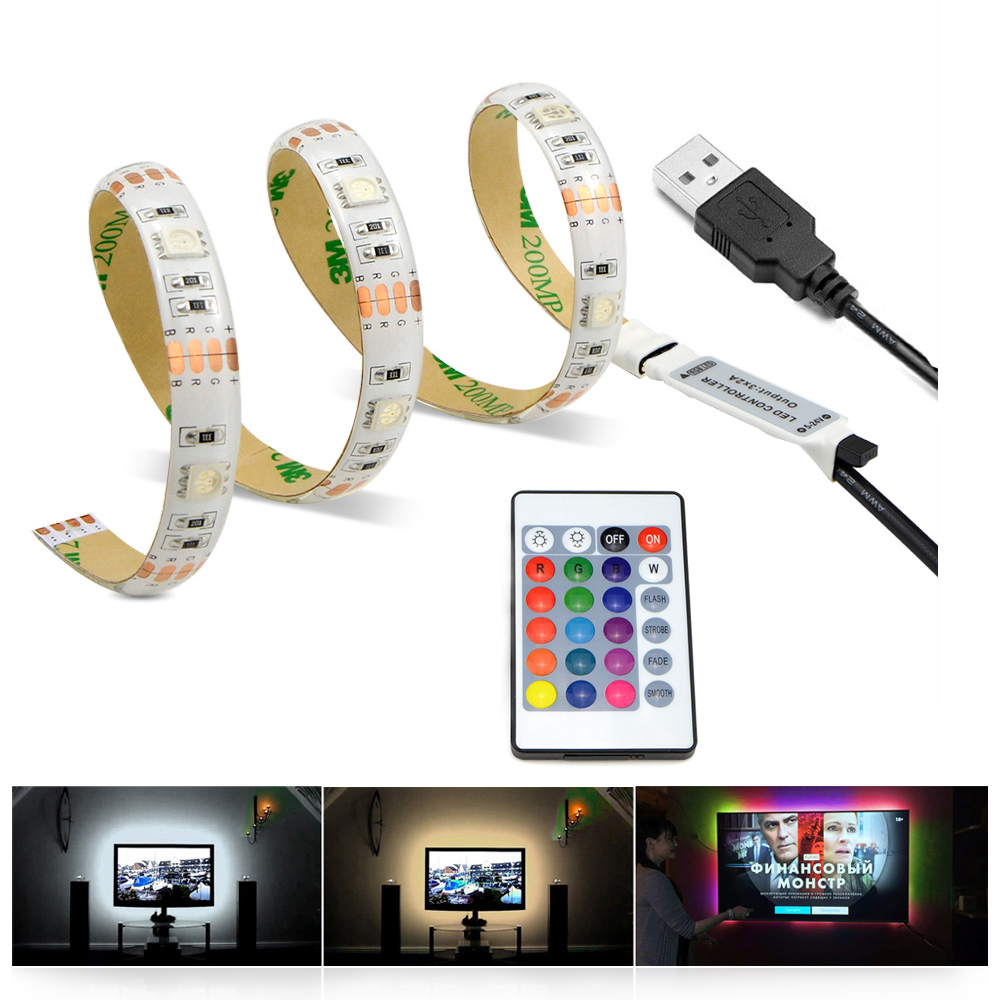 IP20 no waterproof Warm White RGB USB cable LED strip light 3528 SMD 1m 2m 3m 5m / RGB remote control for desktop TV Decor lamp