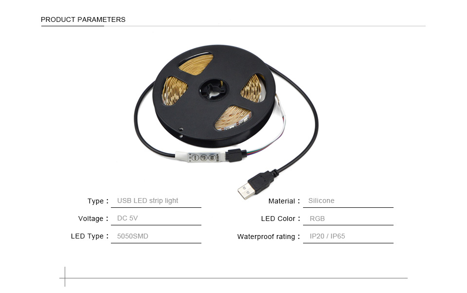 LED holiday light DC 5V 5050 SMD USB cable RGB LED strip light 1m 2m 3m 4m 5m USB LED light Fairy Christmas TV Decoration lamp