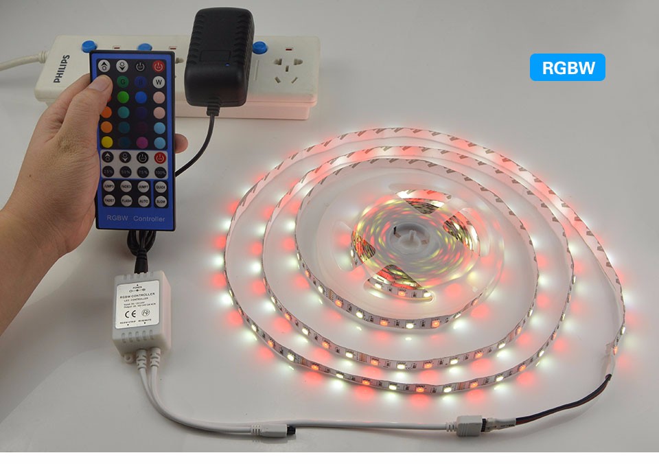 - IP20 RGBW RGBWW SMD 5050 5M LED strip light Tape DC12V Flexible Ribbon lamp 60LEDs/M 40key Controller + 3A Power Supply Adapter