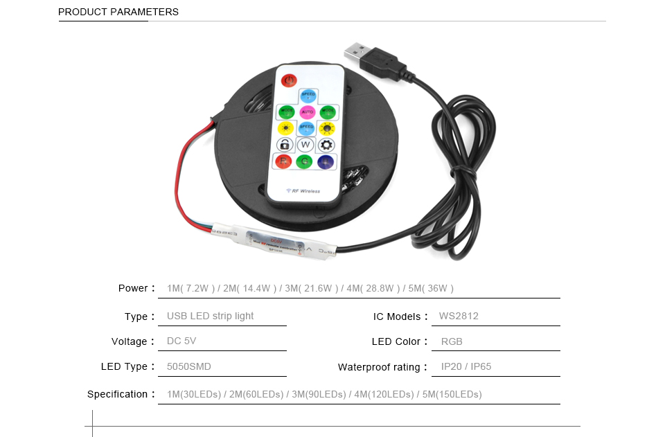 3528 2835 SMD RGB USB LED strip light DC 5V LED lamp IR remote control 1m 2m 3m 4m 5m decor lighting IP20 / IP65 waterproof Tape