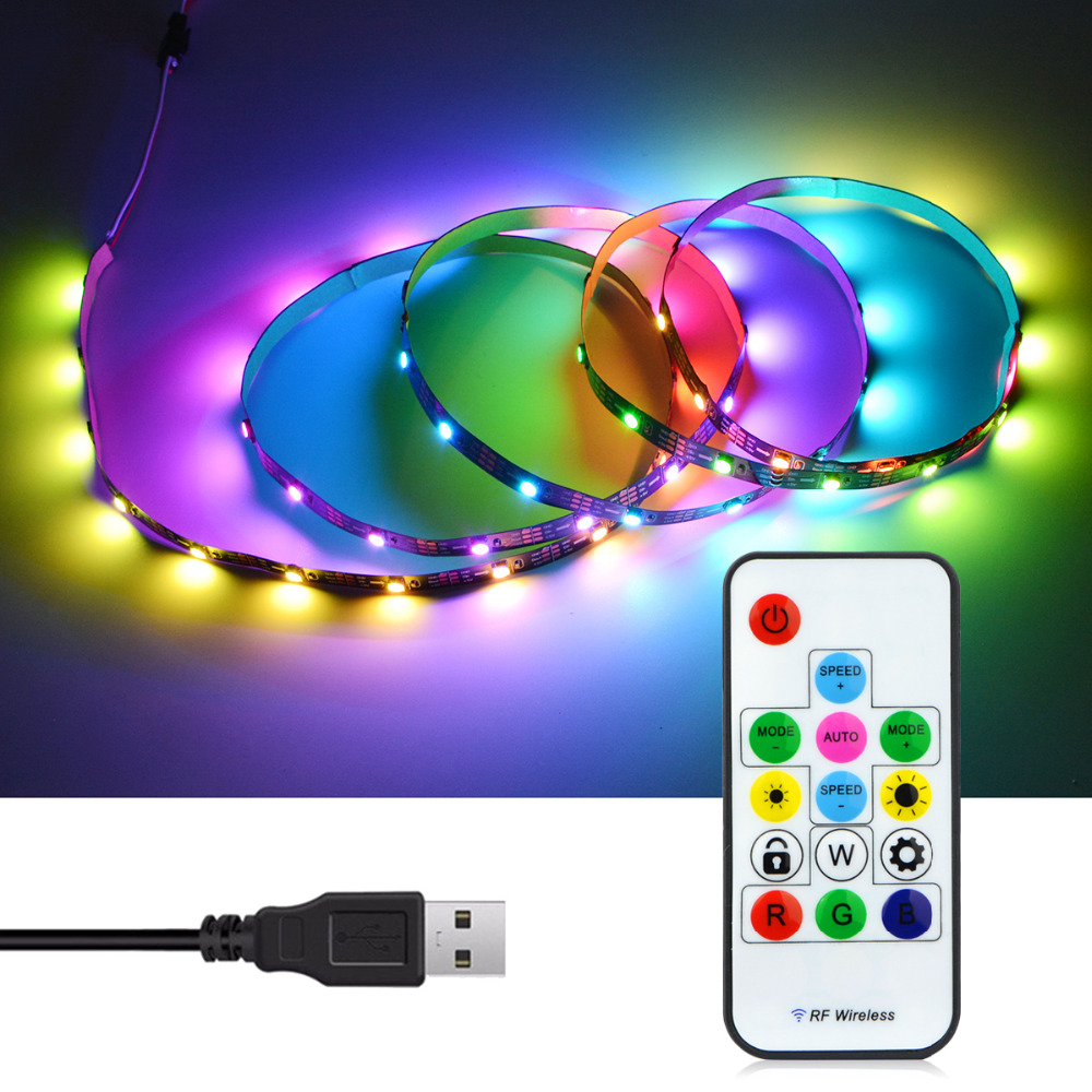 IP20 WS2812B IC DC 5V USB LED strip light RGB 5050 SMD Addressable Pixel LED String Dream Color Neon lamp / RF remote control