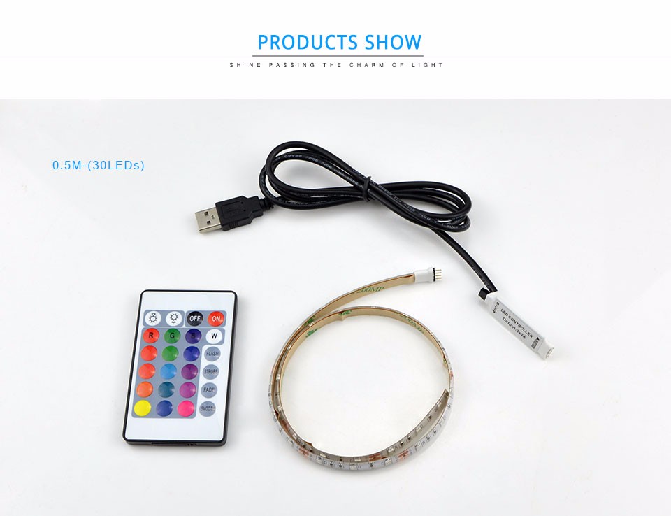 IP65 waterproof decor TV Background Lighting 5V 50cm 1m 2m RGB 3528 5050 SMD USB LED strip light lamp+ 24Key remote Controller