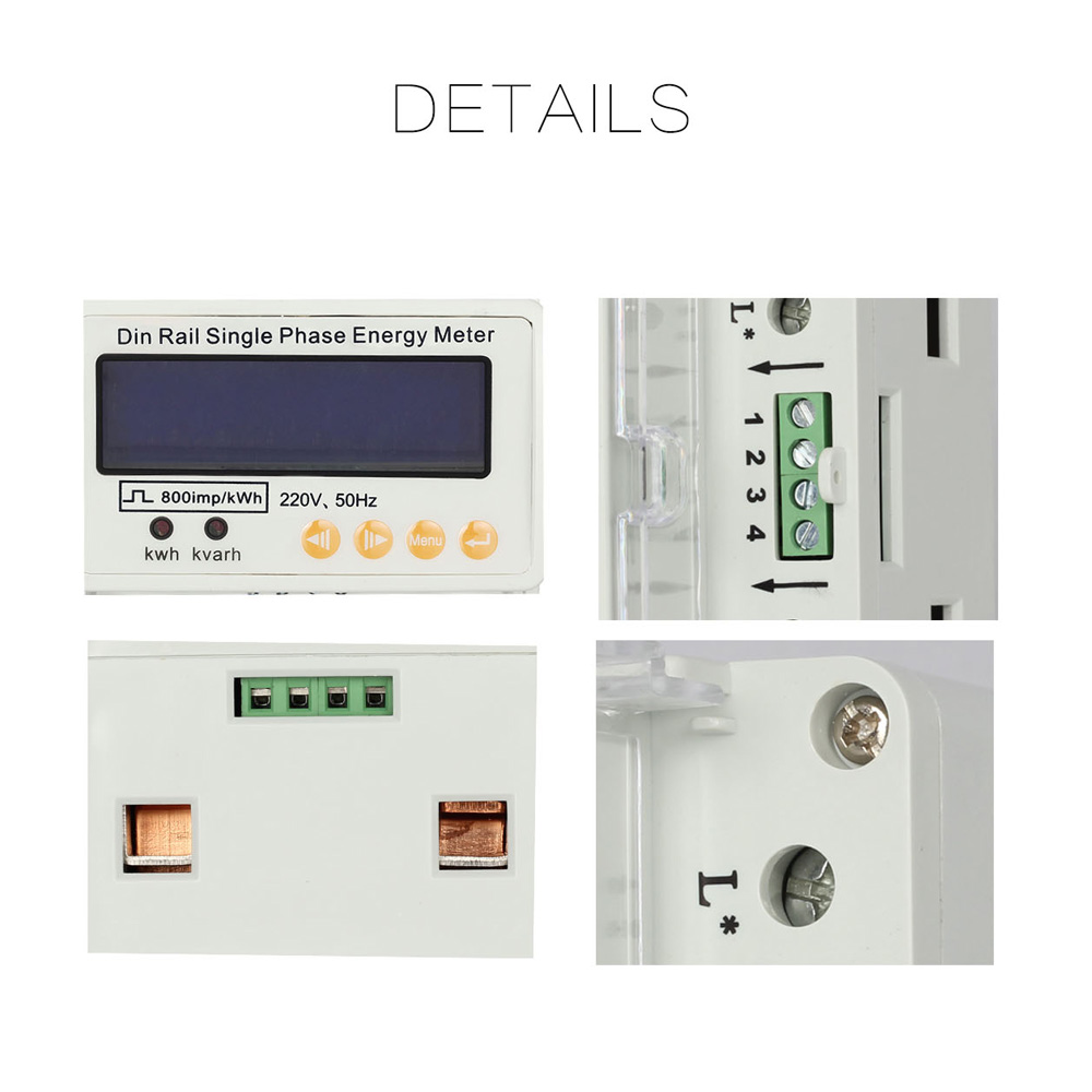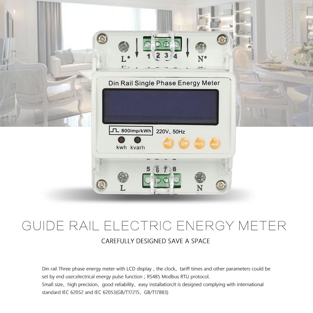 - LCD Electricity Meter Din Rail Single Phase Wattmeter 50/60Hz Power Meter Current/Voltage Watt Meter Din-rail KWH Hour Tester