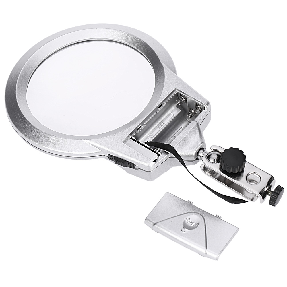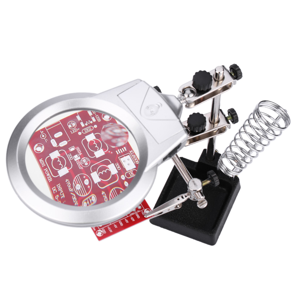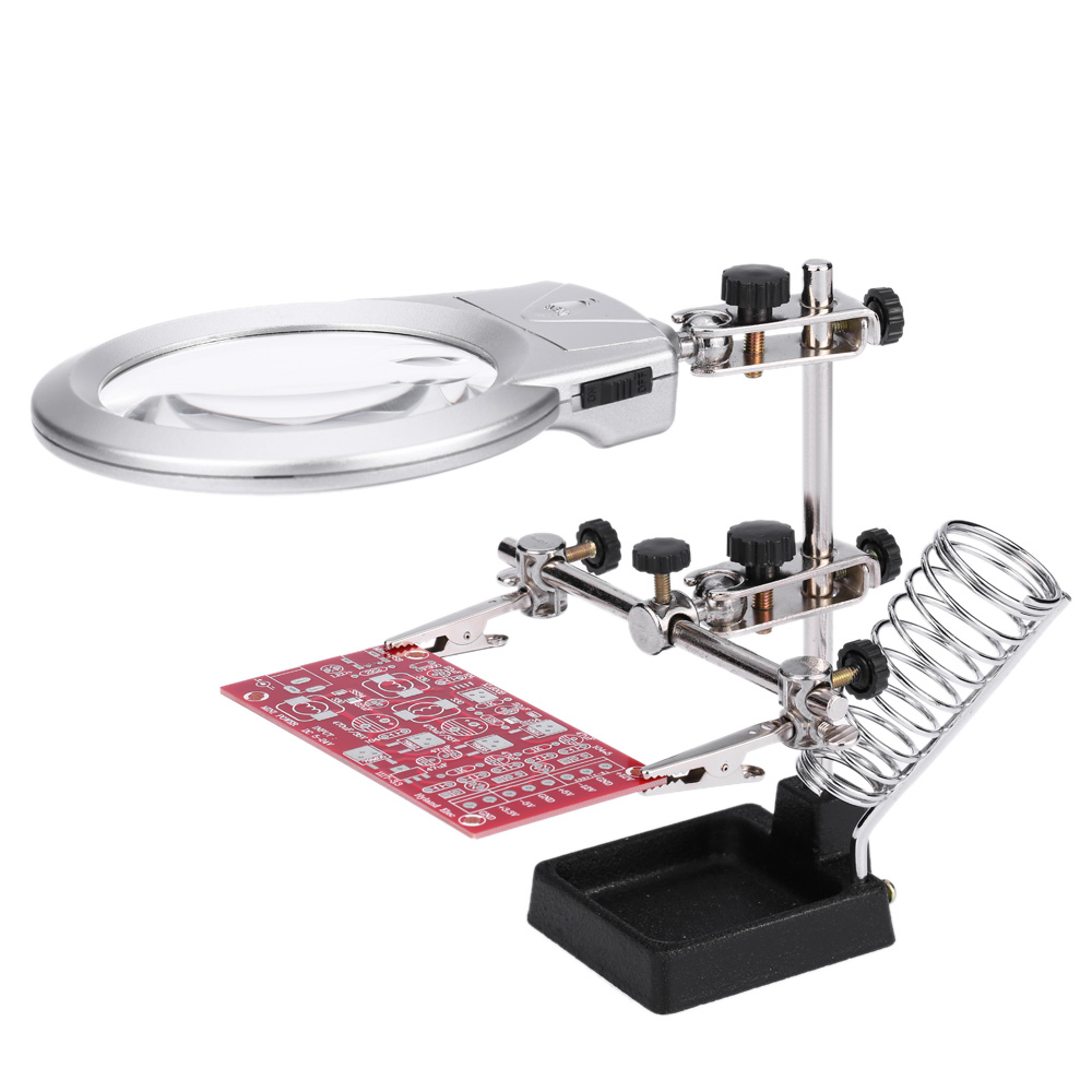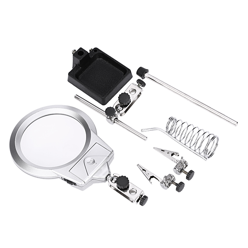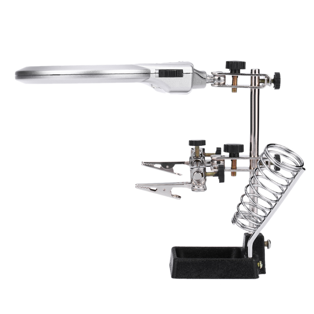 - Multi-functional Magnifier 2X/6X lupa magnifying glass loupe with LED Light Alligator Clip Holder fixture for soldering iron