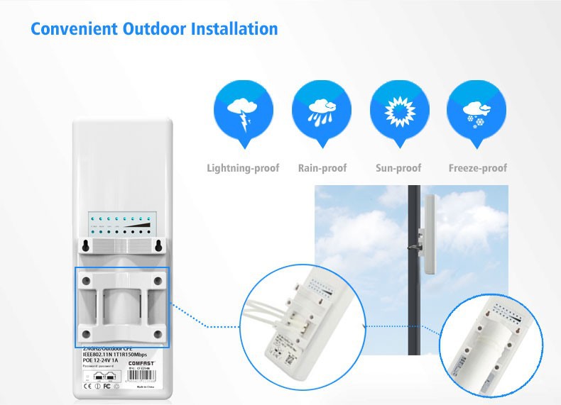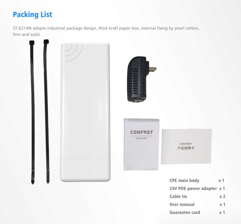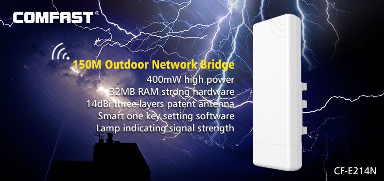 - Network bridge/outdoor CPE 2.4Ghz WIFI Signal Booster & Amplifier Coverage up to 5KM COMFAST CF-E214N