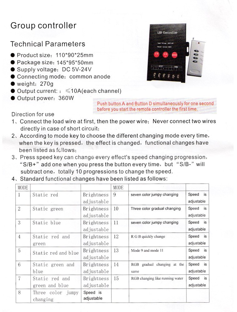 - New 30A RGB LED Controller RF Remote Dimmer DC 5V / 12V / 24V Current 4 Keys 7 Colors Controller For LED strip CR07