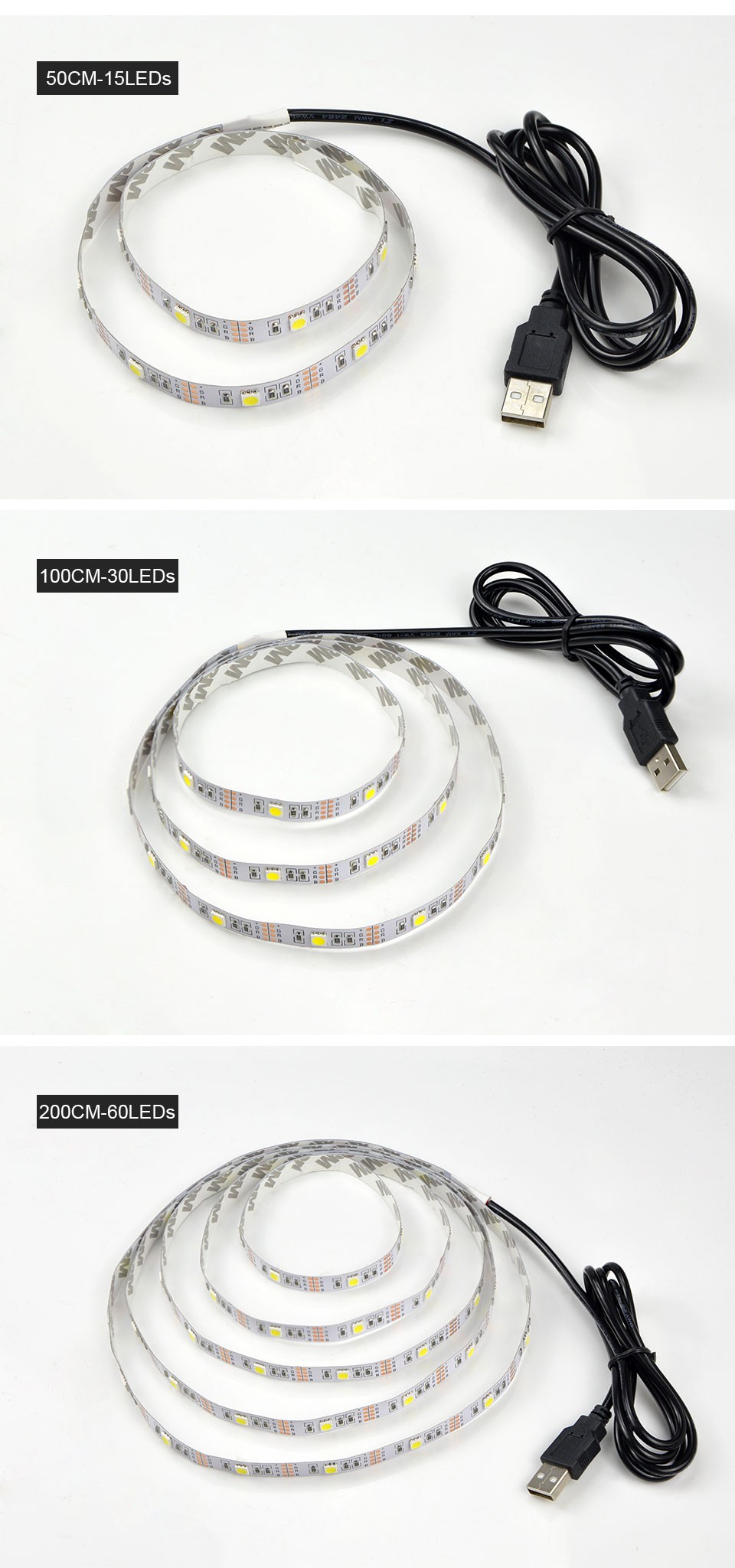 Non- Waterproof Tape USB LED Strip light 3528 5050 SMD 0.5m 1m 2m 3m 4m 5m DC 5V TV Background Lighting Decorative Lamp