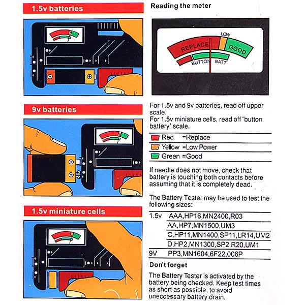 - Professional Battery Tester Checker Useful Battery Diagnostic -tool for 1.5V & 9V Batteries