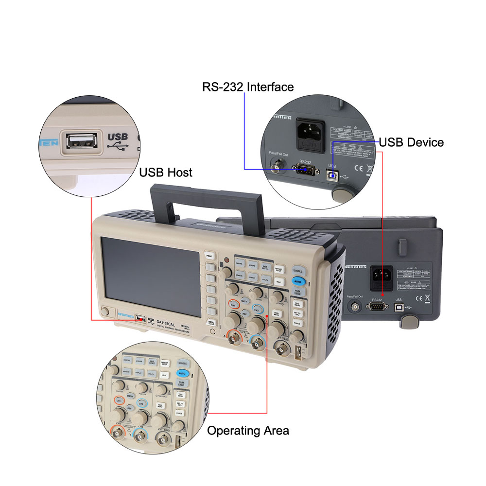 Professional Digital Storage Oscilloscope 2CH 100MHz osciloscopio 1GSa/s 7" TFT Display diagnostic-tool GRATTEN GA1102CAL