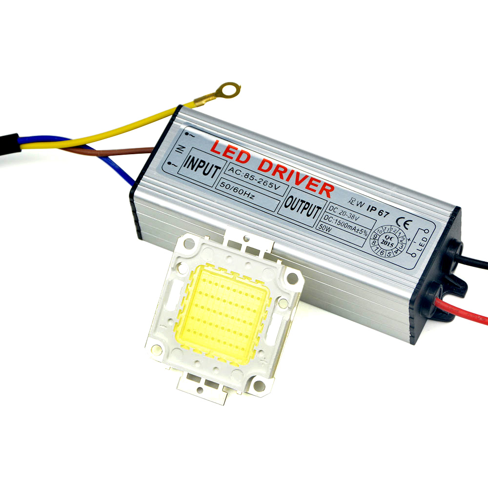 Full Power 10W 20W 30W 50W 100W LED Lamp Integrated COB LED Chips Bulb + IP67 Led Driver LED flood light power supply