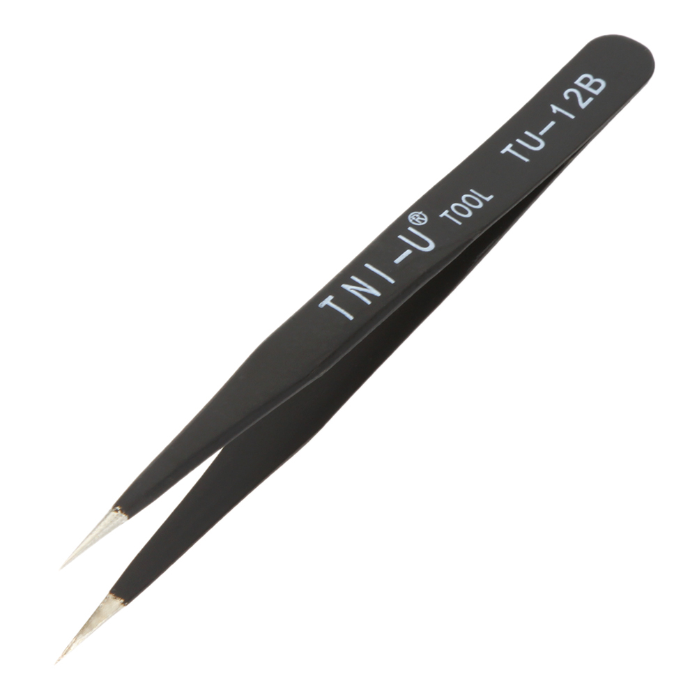 - TU-12B 5''Anti-static Tweezers Black Elastic Fine Tip Straight Tweezers Nipper Precision Electrician Repair Tool Stainless Steel