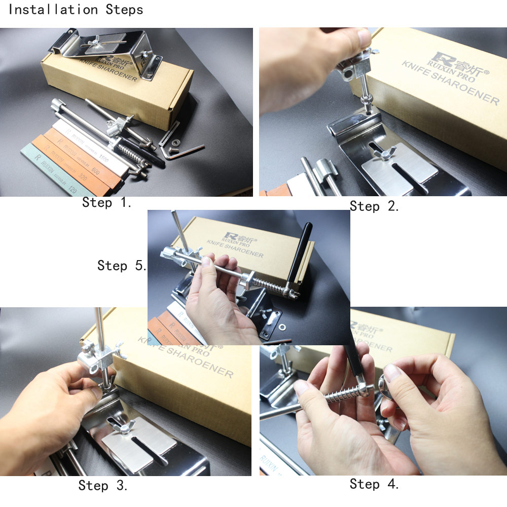 Upgraded Fixed-angle Knife Sharpener Kit Full Metal Stainless Steel knife slicker whetstone +Professional 4 Sharpening Stones