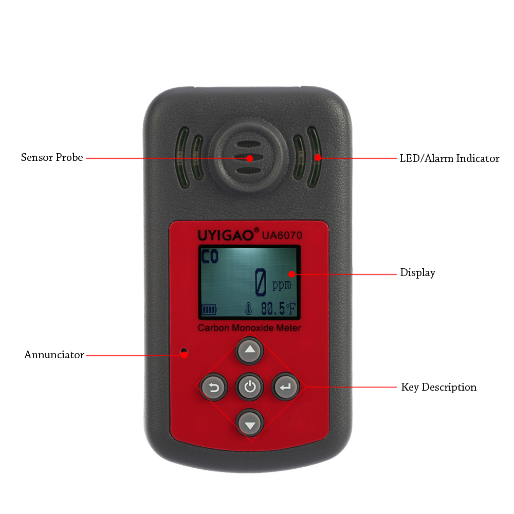 UYIGAO High Precision CO Meter Tester Handheld Carbon Monoxide gas detector Monitor with LCD Display Sound Light Alarm 0-2000ppm
