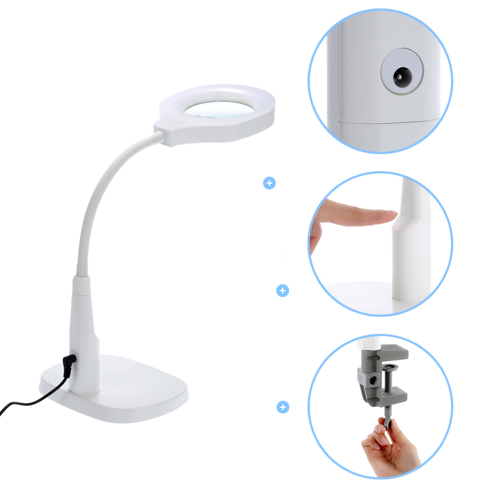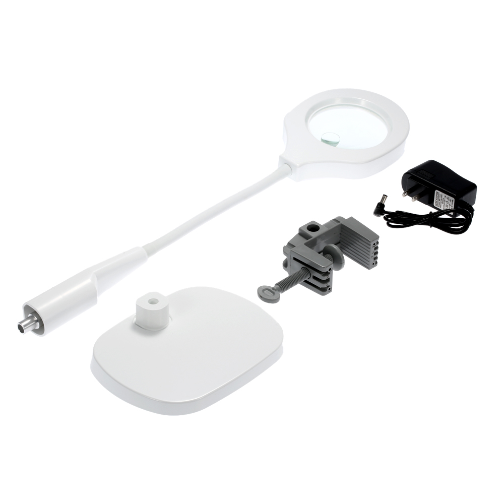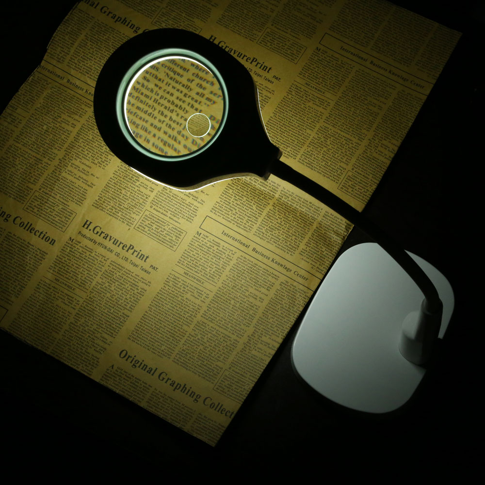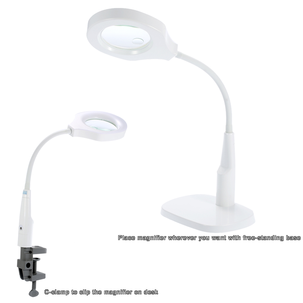 - Versatile 2 in 1 Lighted Magnifier Desk Lamp Flexible Magnifying Glass with Light Hands-free Loupe with Clamp and Base Holder